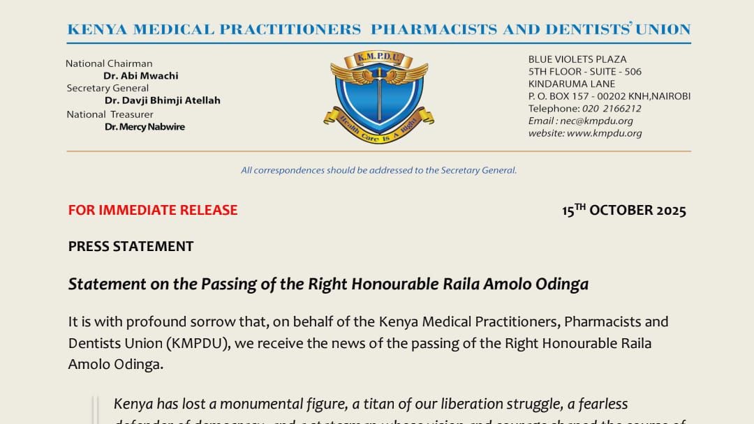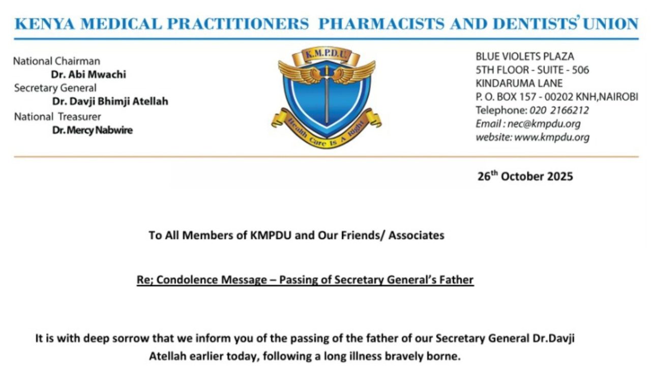 With Deepest Sympathy: KMPDU Mourns The Passing of Mzee Atellah