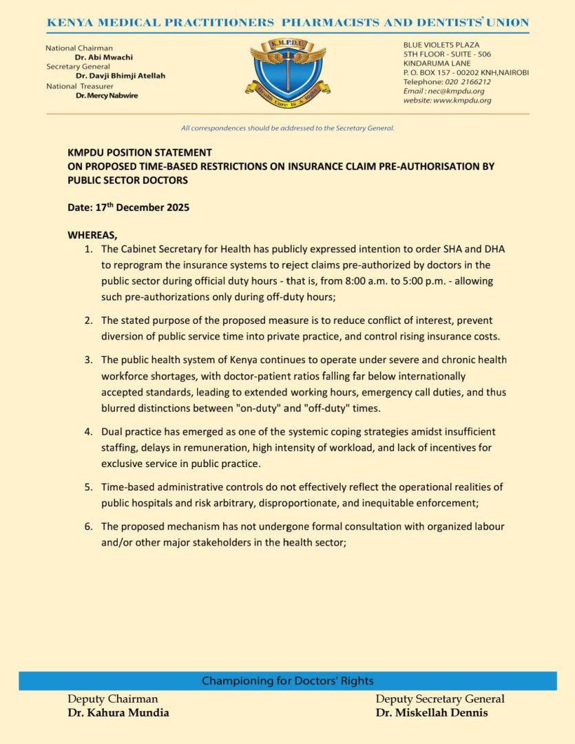 Statement On Proposed Time-Based Restrictions On Insurance Claim Pre-Authorization by Public Sector Doctors